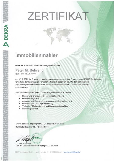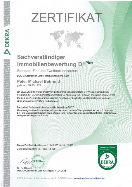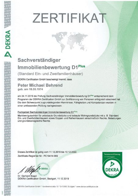 Als geprüfter und zertifizierter Verbandsgutachter sowie DEKRA zertifizierter Sachverständiger für Immobilienbewertung D1plus kann er sowohl als Schiedsgutachter als auch lediglich als Vermittler und Handlungsgehilfe zwischen den oft zerstrittenen Parteien fungieren, um so schnell und einvernehmlich Streitigkeiten bei gemeinsamem Immobilienbesitz zu klären. So können oftmals Zeit und Kosten für aufwändige Gerichtsverfahren eingespart und das Nervenkostüm geschont werden. Über die WUP, Peine, verfügt Peter M. Behrend auch über ein hervorragendes Netzwerk für alle rechtlichen Fragen, was eine große Hilfestellung darstellen kann.